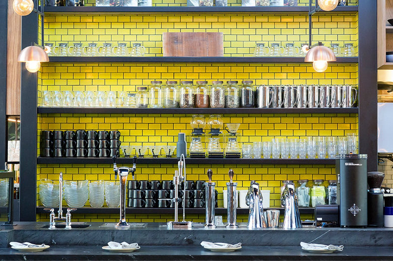 This Eichler home in Marin uses 3x12 Classic Field tile in Bright Yellow, a bold color that displays beautiful natural variation.