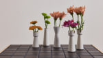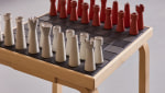Using a tonal black version of the square Tile Table (which conveniently features an 8x8 grid) as a base, Tung set to work designing a series of sculptural chess pieces—each thrown and glazed by hand in the Clay Studio. In the spirit of balancing form with function, the chess pieces serve a second purpose: in between matches, they can be displayed as single-stem flower vases.