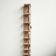 This tall ceramic branch is cut into nine sections each representing a theme from past Design Series and displayed vertically in a red oak shelf. There is a little red bird that is free to fly around and rest on any section of the branch. A simple mechanism allows the bird to stay where she likes. I particularly like when she rests on the piece respresenting Design Series Eight which is shaped like a branch that has been carved by a woodpecker; or when the bird is looking inside the piece representing Design Series Nine which is a planter. The shelf was built by Eddie Aya, an up-and-coming woodworker in the Bay Area. —Tung Chiang, Clay Studio Director