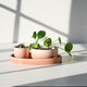 This form is about pairing—finding plants that can be brought into harmony in one shared space. A large, oval tray catches the water for two round planters of different scale. The two species share similar water requirements but otherwise contrast one another in shape, color, and character. It’s about understanding the nature and needs of the plants, but pairing unexpected ones together. — Tung Chiang