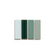 The Mural collection is a series of pre-configured tile patterns in curated colorways. The Reed pattern uses 1x3 tiles—a versatile size and shape that lend itself to creating block-like patterns where proportion, scale, and color can really shine. The colors of each palette are carefully chosen and placed to create an effect that resembles woven fabric with moments of layered transparency and dynamic movement. The Wharf colorway consists of Reef, Winter Sky, KPFA Green, and Ogawa Green. Up to one tile sample kit may be ordered online.